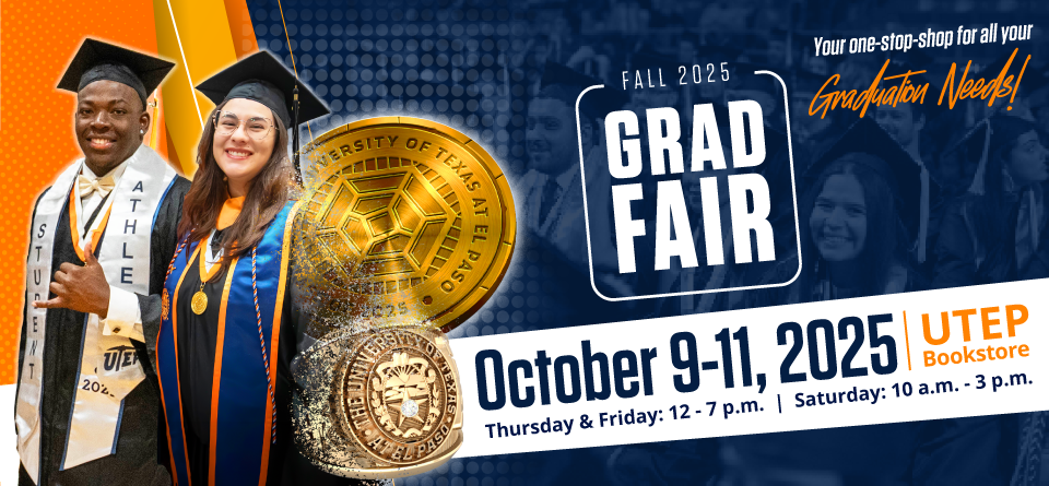 What an exciting time, Miners! Soon you will be crossing the stage at commencement and officially joining our community as UTEP Alumni. To help you prepare for graduation, Grad Fair is hosted each semester where you can order your regalia, and official UTEP medallion and take graduation photos early!